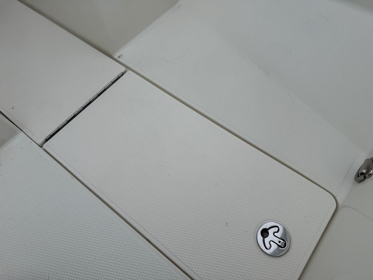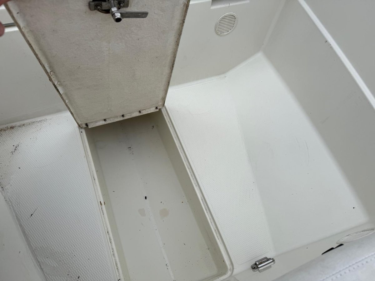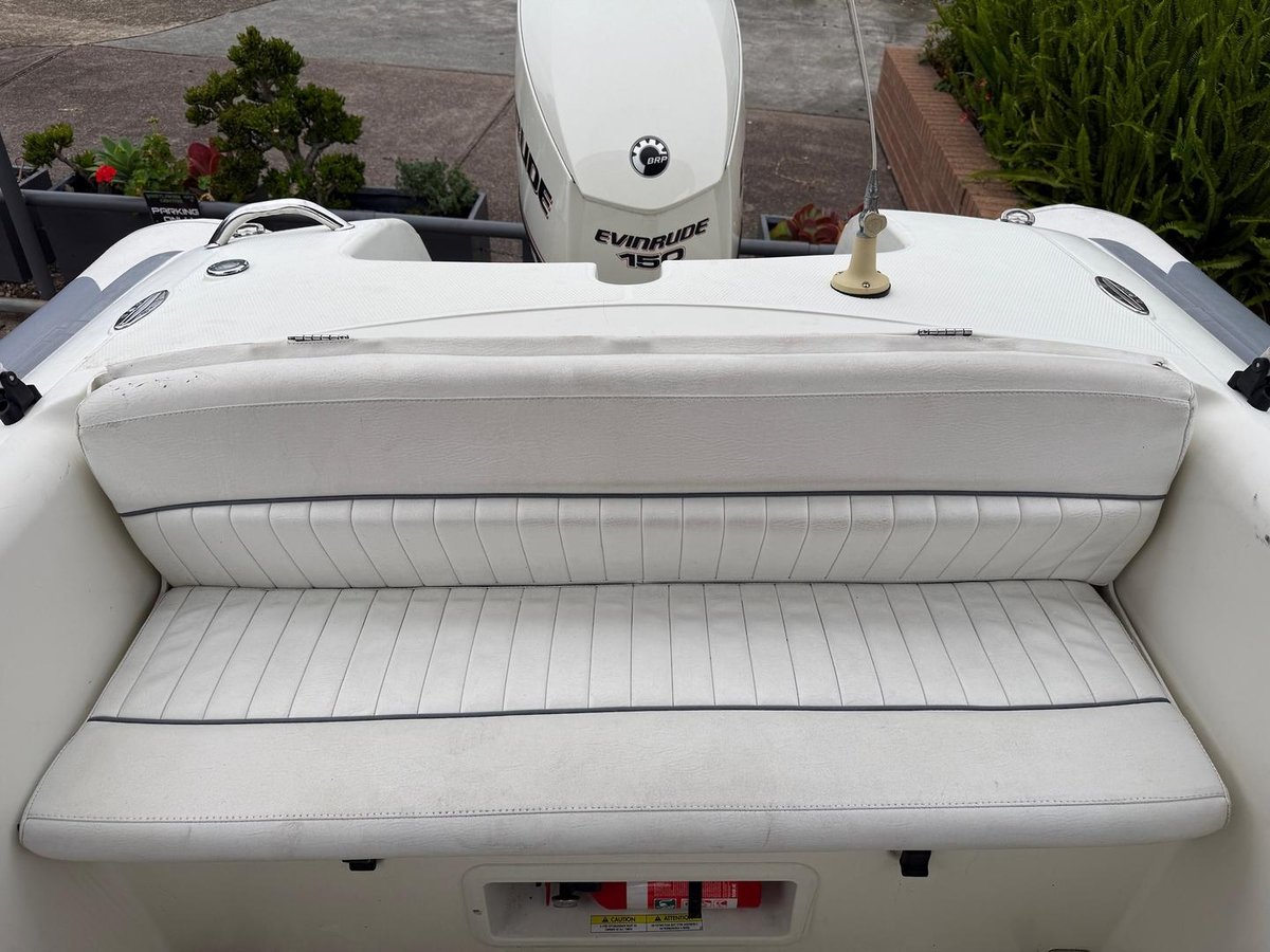 This one is fitted with bimini top, boat cover, telescopic boarding ladder, hydraulic steering, rear lounge with storage under, driver and passenger folding bucket seats, engine instrumentation, VHF Radio, Humminbird Fishfinder, windscreen on console, drink holders, large underfloor storage compartments, anchor well, dual fuel tanks with change over switch, battery isolation switch.