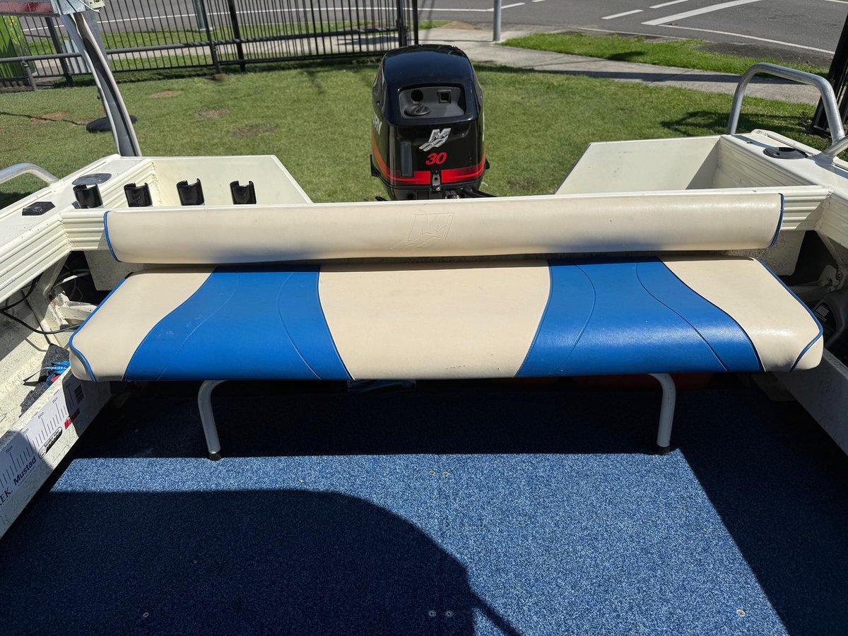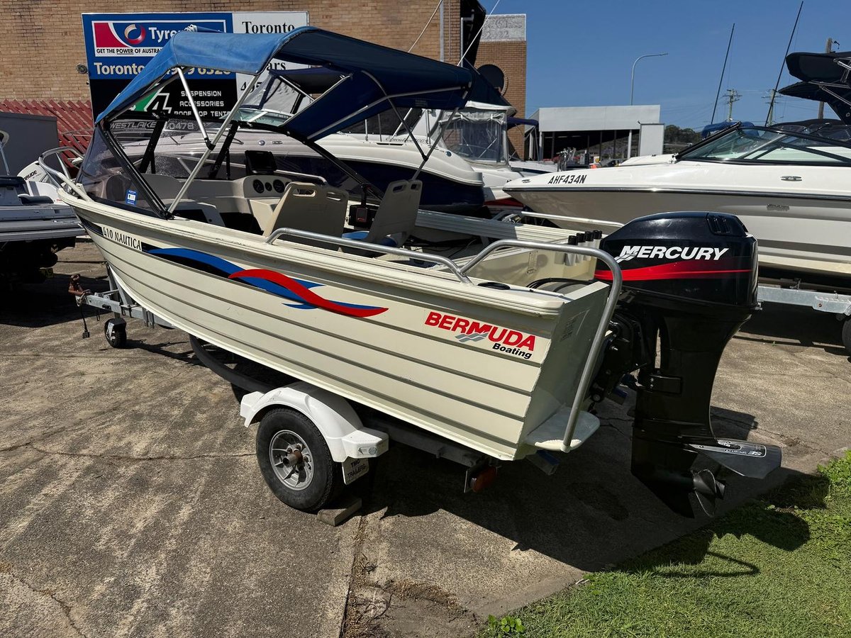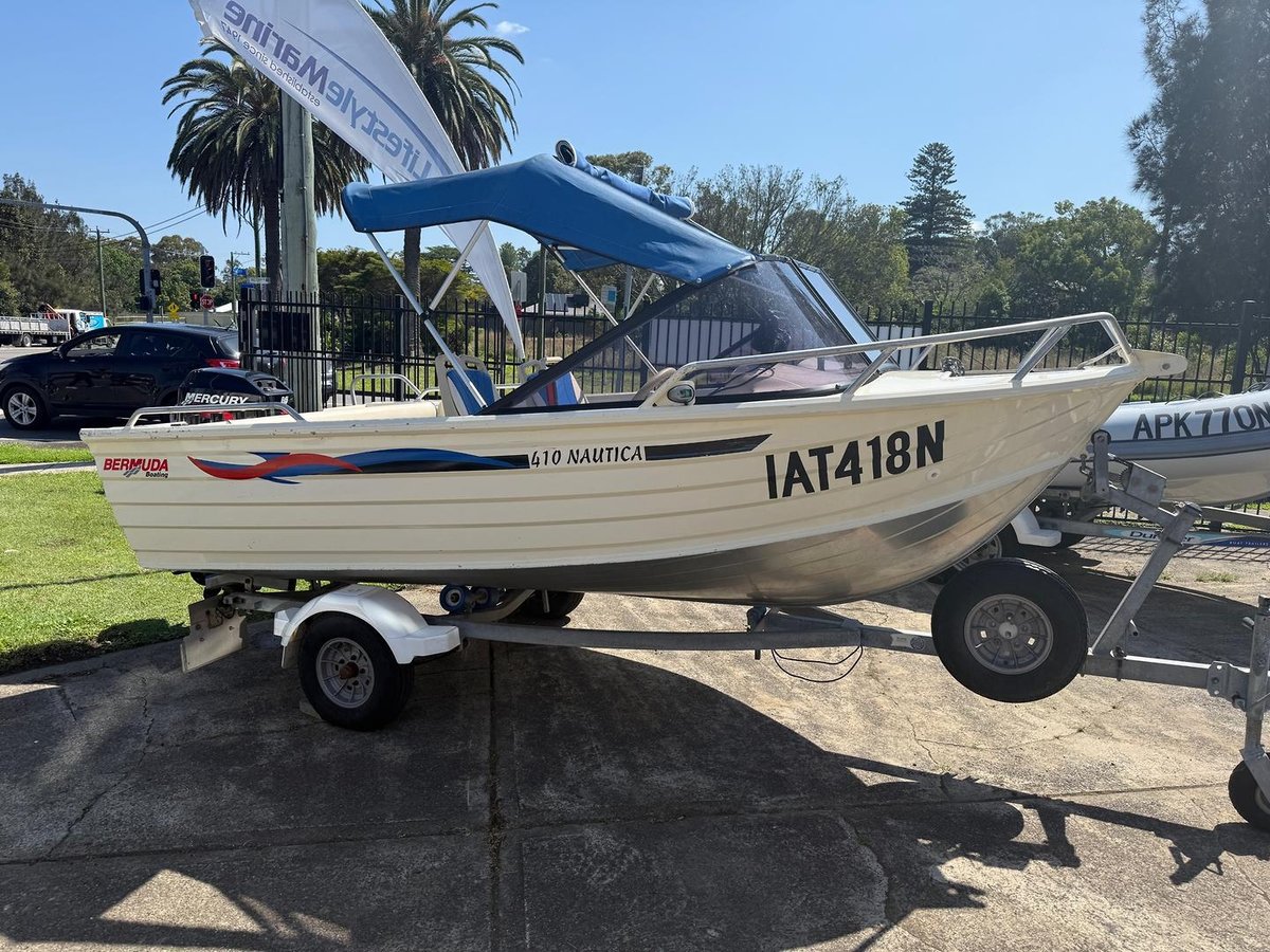 If you are looking for a Stacer or Quintrex check out this Bermuda it stacks up really well. It is very deep and wide for its size and measures 4.25 metres overall length. This 4.1 Nautica has the full width engine well making it much safer than the similar models that have the cut down transom and no well.