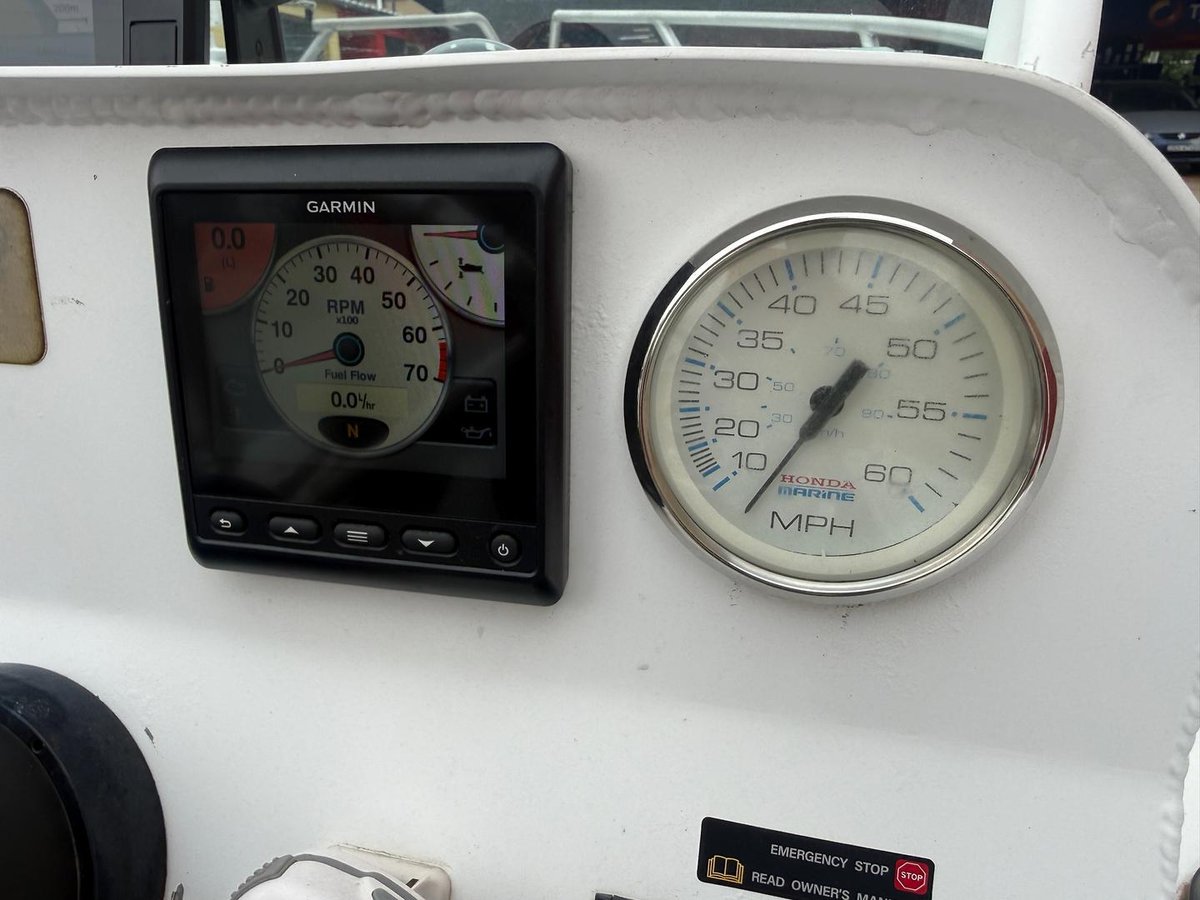 2024 Honda 80hp with only 20 hours running and Garmin digital engine display, stainless steel propeller.