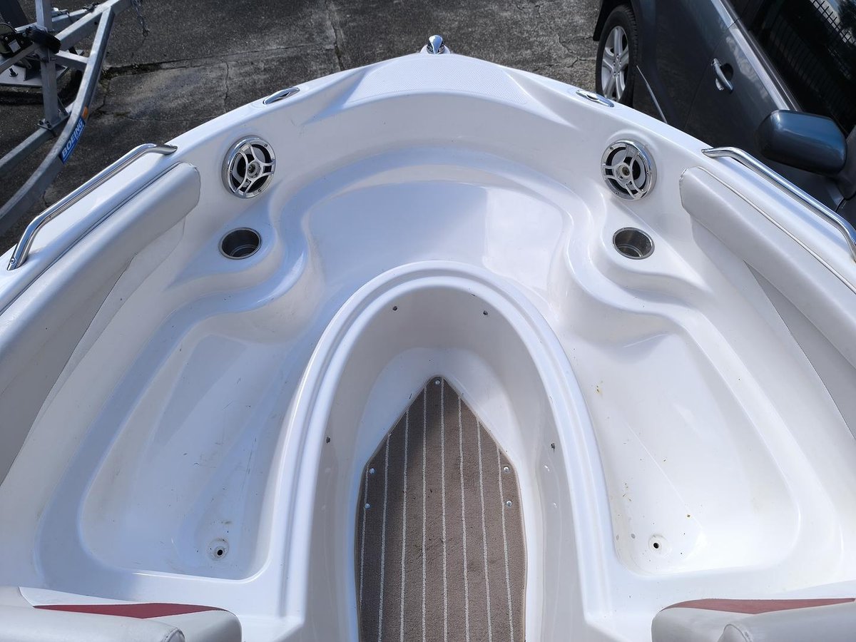 This one is fitted with bimini top, wakeboard tower with racks, extended boarding platform, telescopic boarding ladder, u-shaped cockpit seating, lots of storage, large underfloor storage, cockpit carpet, driver and passenger buckets seats with flip up bolsters, Raymarine GPS/Fishfinder, full engine instrumentation, tilt adjustable steering wheel, ski mirror, slide out ice box, bow and cockpit covers, bow seating with storage under.