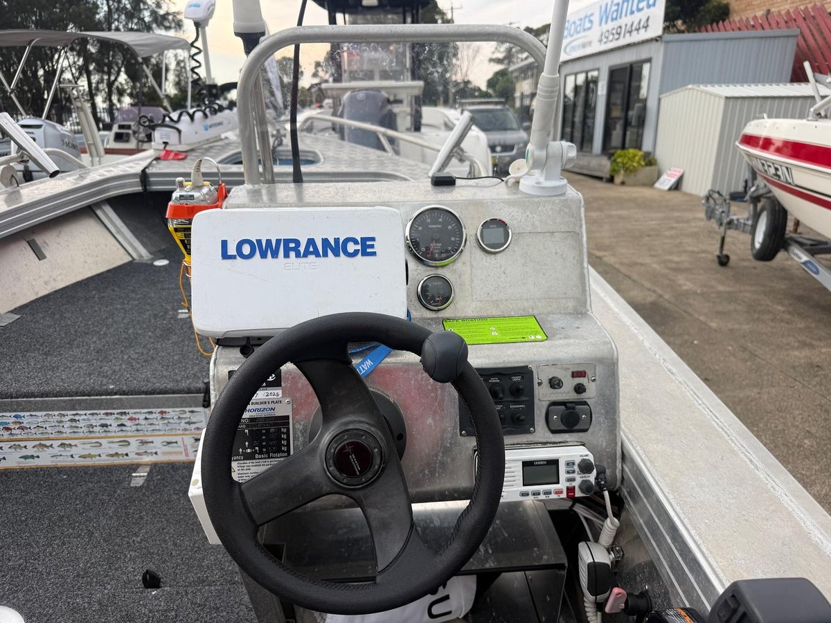 These are a great fishing boat, very beamy for their length, fish in the ocean on a good day, perfect for lake, bay or river. The Hydra Lift hull delivers a better ride than most equivalent aluminium boats. This one is loaded with extras listed below including the self draining engine well for much safer rough water operation.