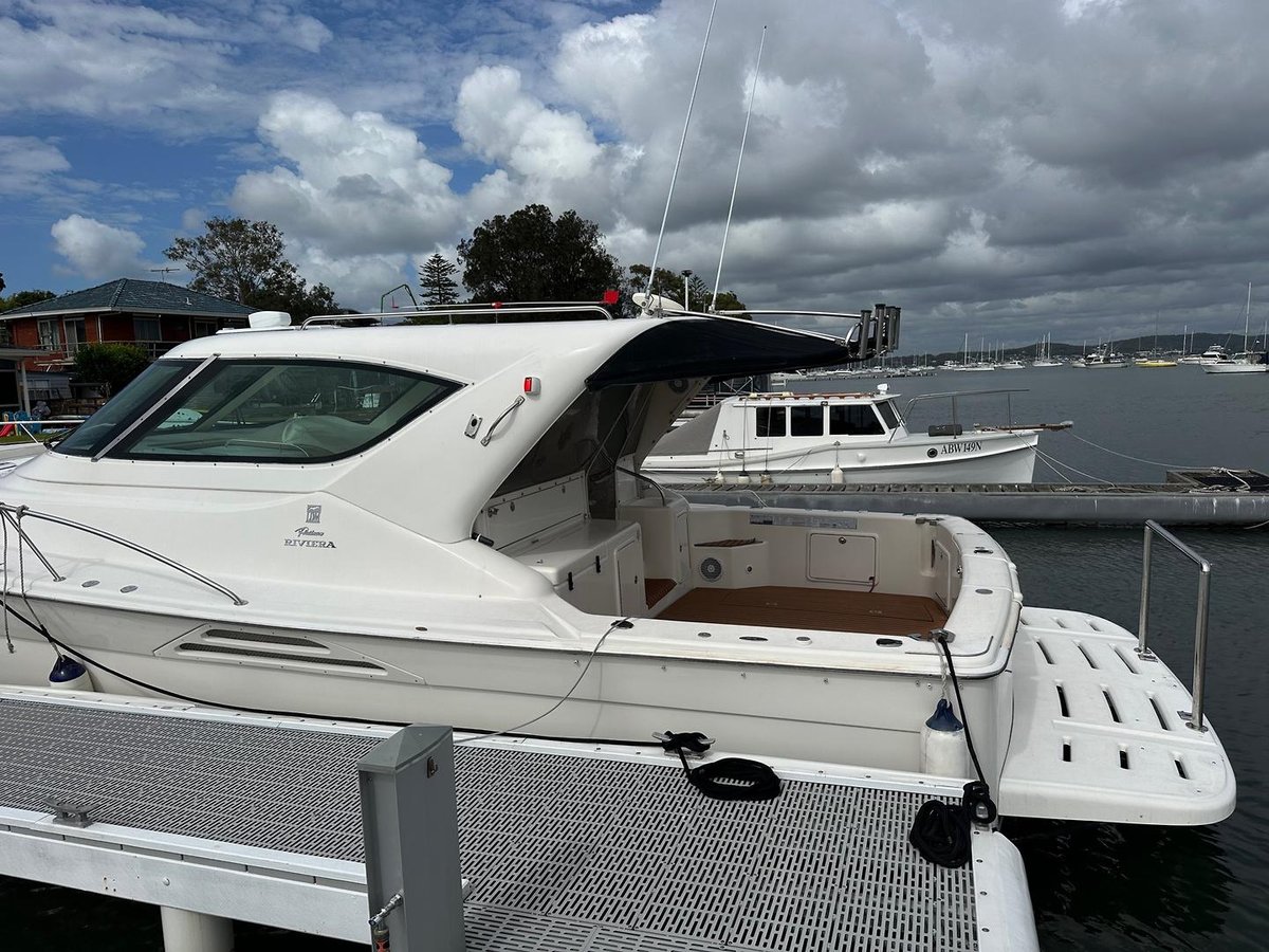 2004 Riviera 4000 Offshore Enclosed Hardtop in good condition with loaded with extras, one of the last built. Twin Volvo Electronic TAMD74EDC 430hp Turbo Charged Aftercooled Diesel Straight Shaft Drive engines with under 1100 hours sitting in a well above average engine bay. Cruise comfortably at 22 knots with a top speed of 27 knots. Kohler 9 Kilowatt generator in sound shield that has done 1200 hours.