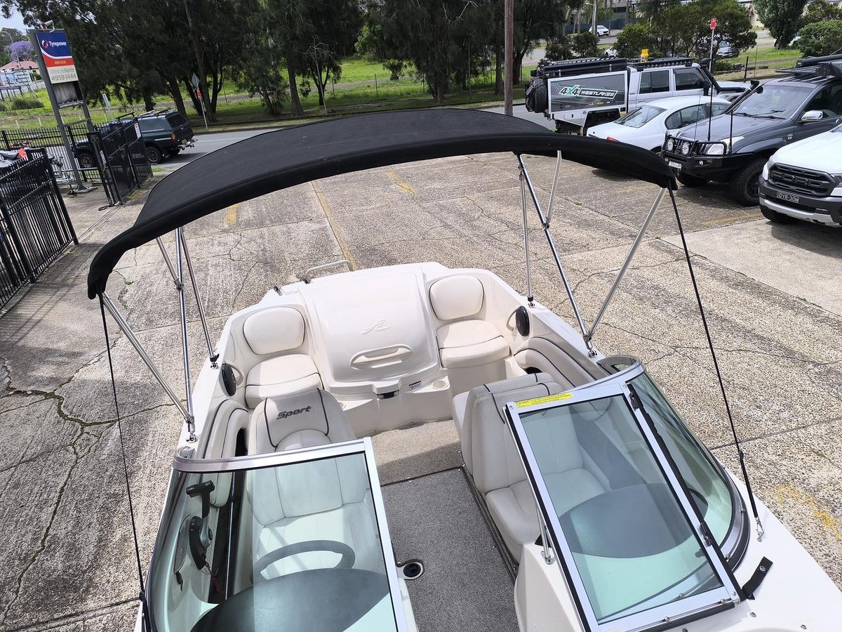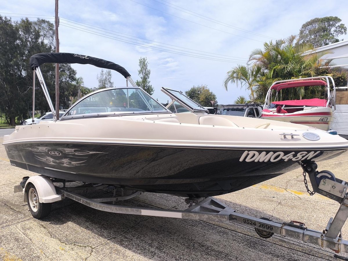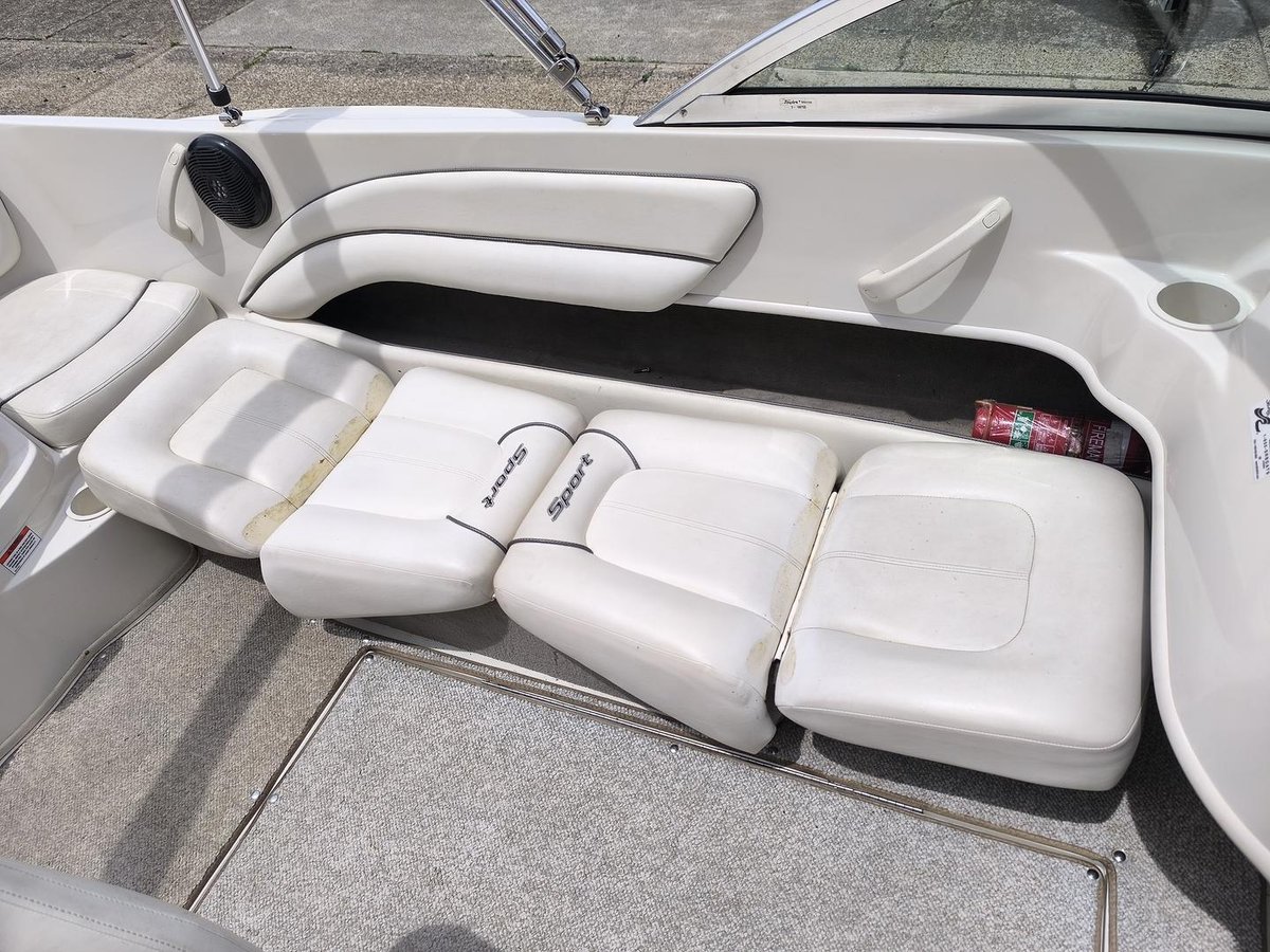 This one is fitted with colour gelcoat hull, moulded boarding platform plus extended platform, telescopic boarding ladder, bimini top, bow and cockpit covers, cockpit carpet, drivers bucket seat, passenger back to back seat that converts to a sun lounge, navigation lights, bilge pump, large underfloor storage, drink holders, glove box, cockpit grab handles, bow seating with storage under.