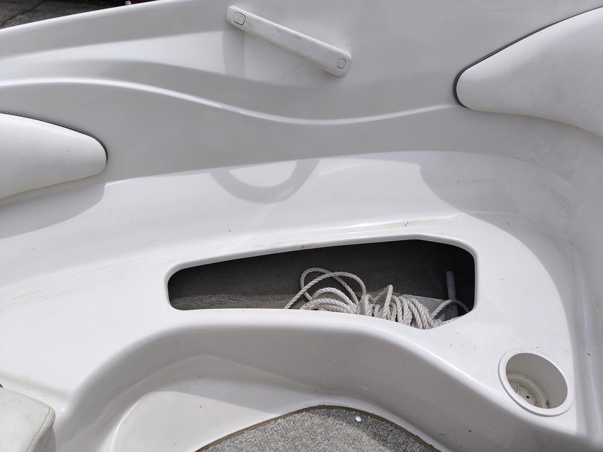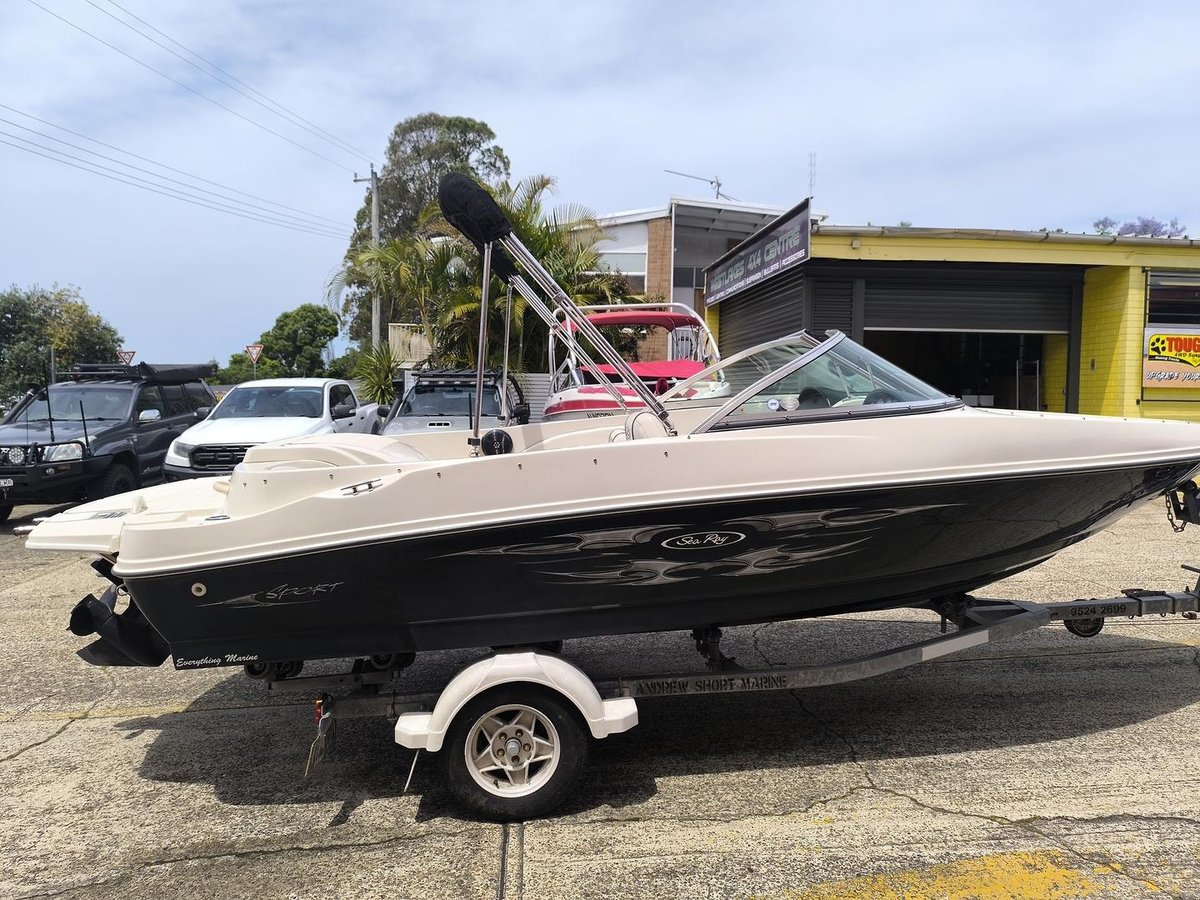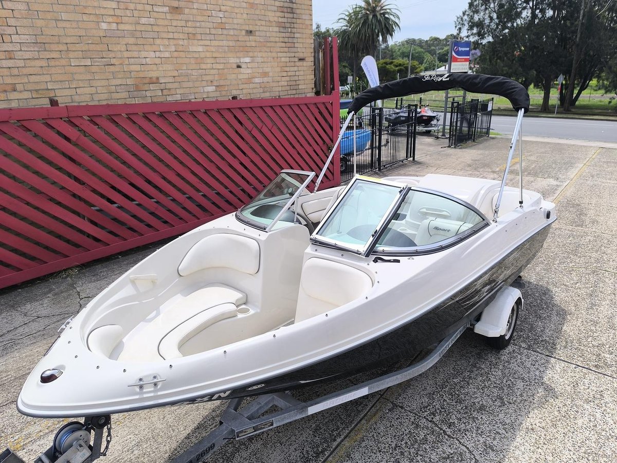 This one is fitted with colour gelcoat hull, moulded boarding platform plus extended platform, telescopic boarding ladder, bimini top, bow and cockpit covers, cockpit carpet, drivers bucket seat, passenger back to back seat that converts to a sun lounge, navigation lights, bilge pump, large underfloor storage, drink holders, glove box, cockpit grab handles, bow seating with storage under.