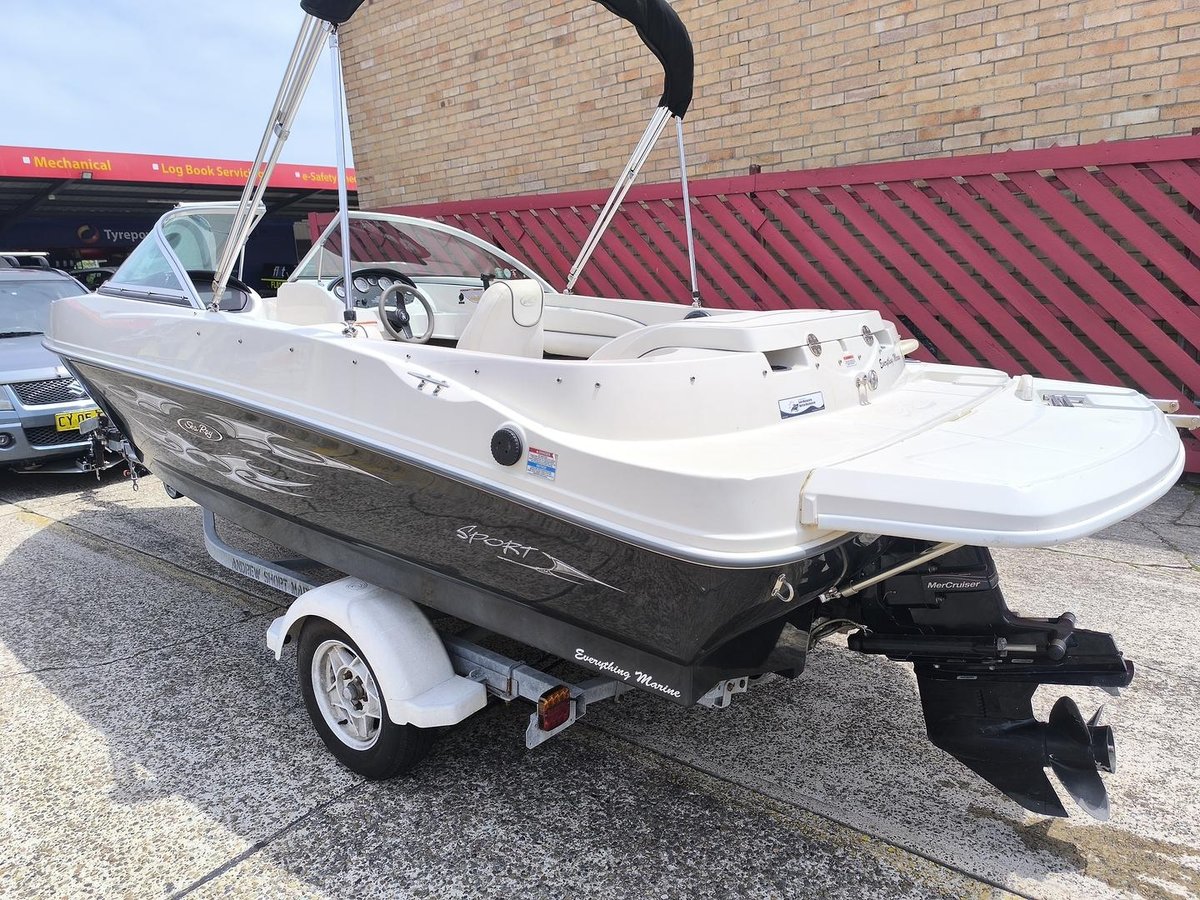 2008 Sea Ray 175 Sport Bow Rider in very good condition. This is the newer shape 175 Sport with higher deck for more freeboard, updated dash and improved engine cover. Mercruiser 135hp 4-stroke with low hours. Brooker galvanised multi-roller drive on trailer with white alloy wheels and plastic mud guards.