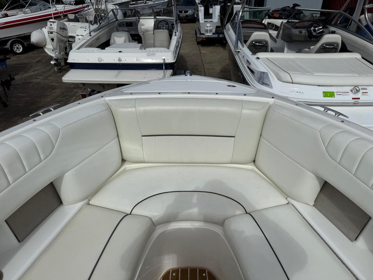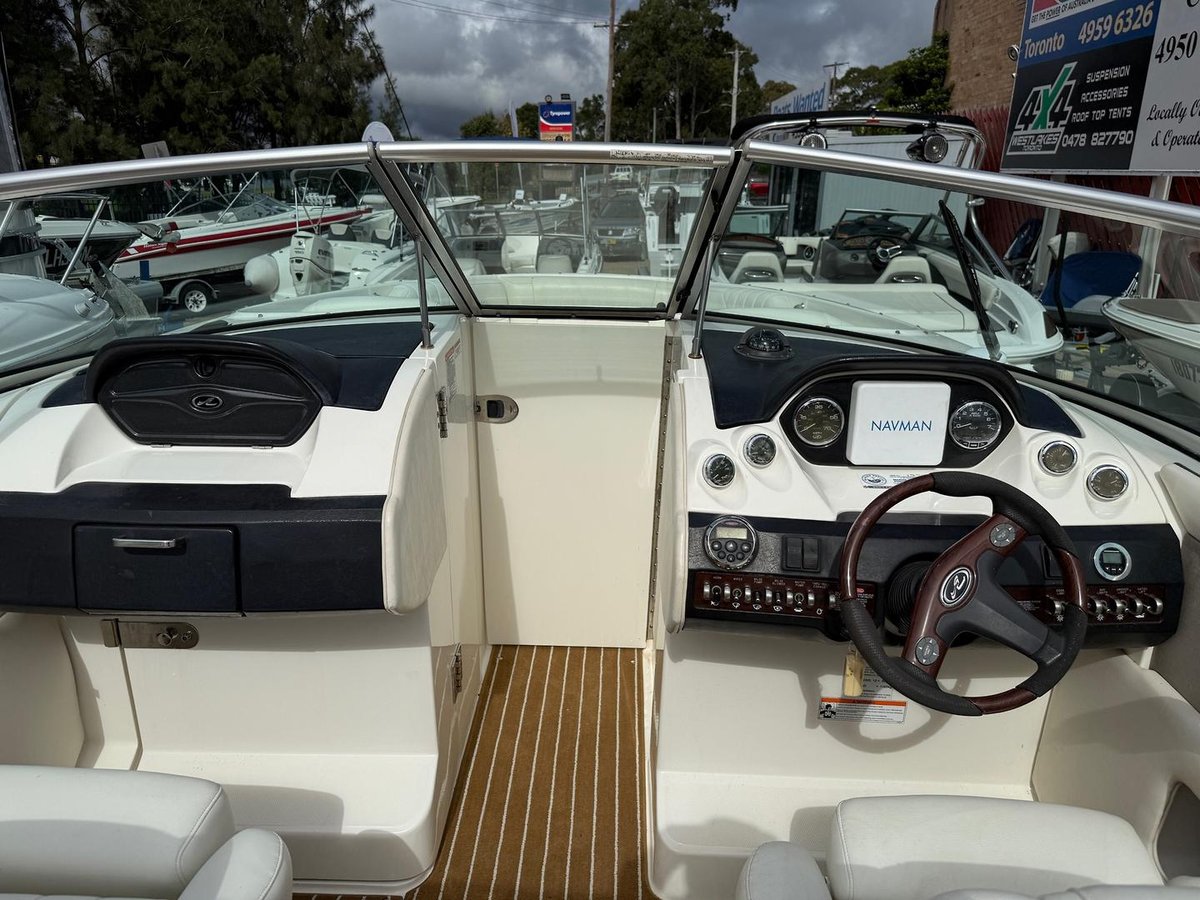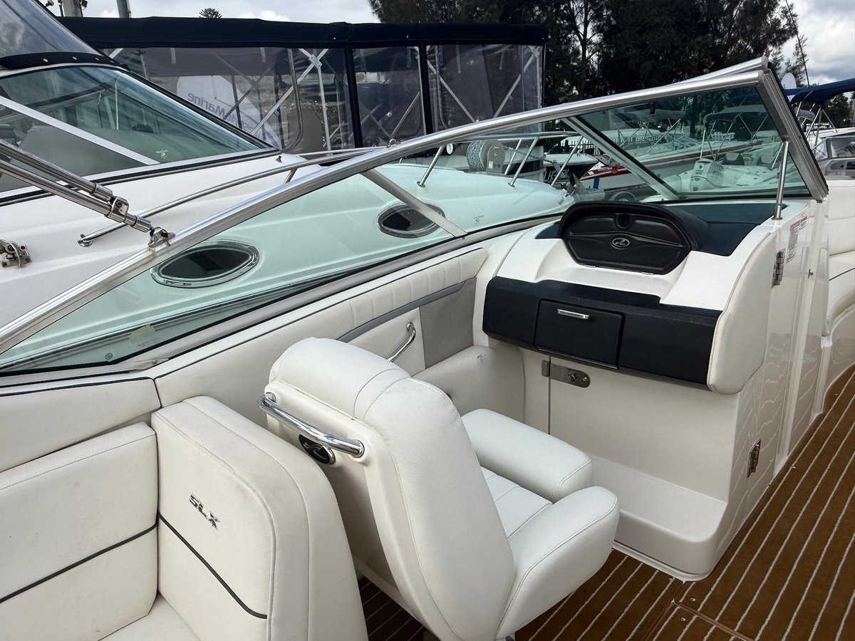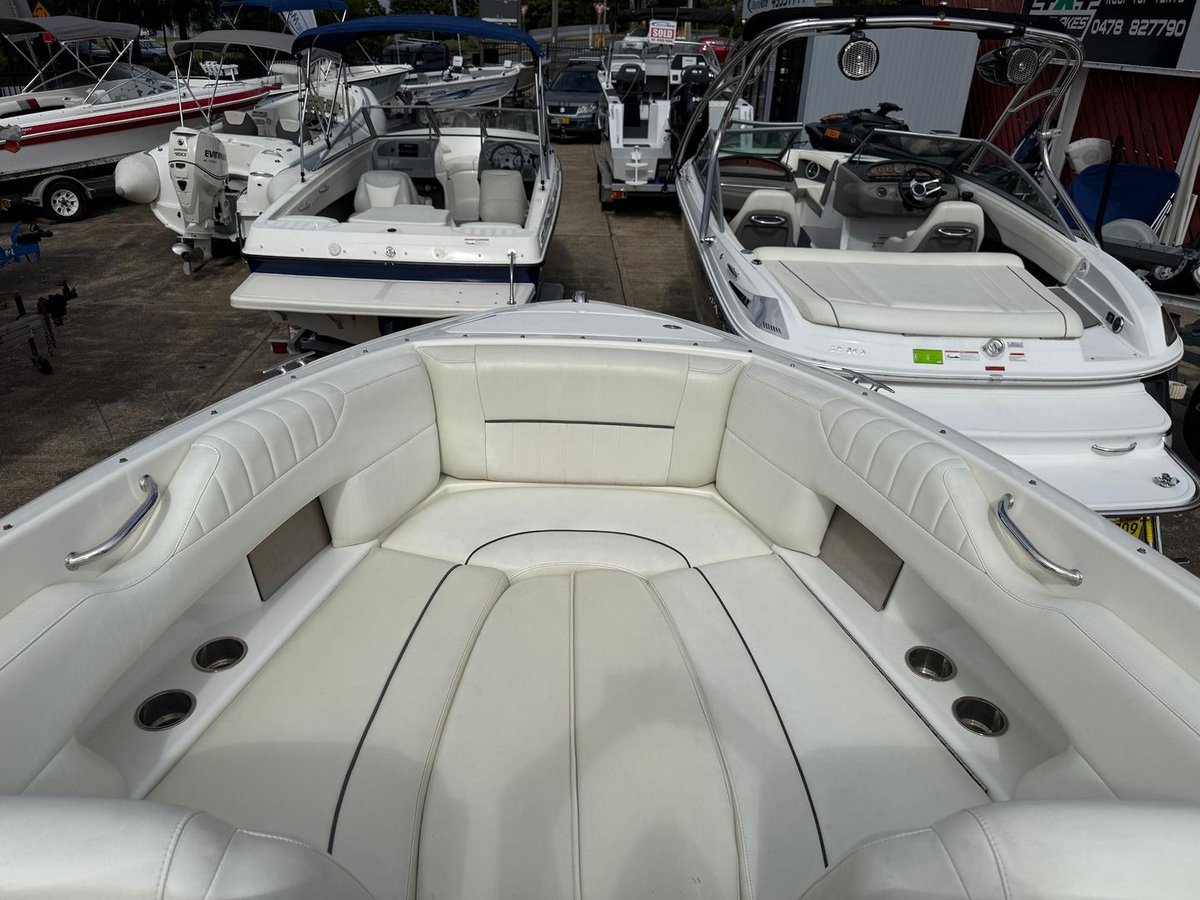 This one is fitted with colour hull, twin Bimini tops, bow and cockpit covers, power anchor winch, large telescopic boarding ladder, boarding platform, fresh water transom shower, walk through boarding access, full width removeable sunpad, u-shaped seating with storage under, new cockpit carpet, bow and cockpit tables, cockpit sink, driver and passenger seats with flip up bolsters, port side cubicle with vacu-flush toilet and sink, engine instrumentation, large underfloor storage, table and general storage in drivers console, bow seating with storage under.