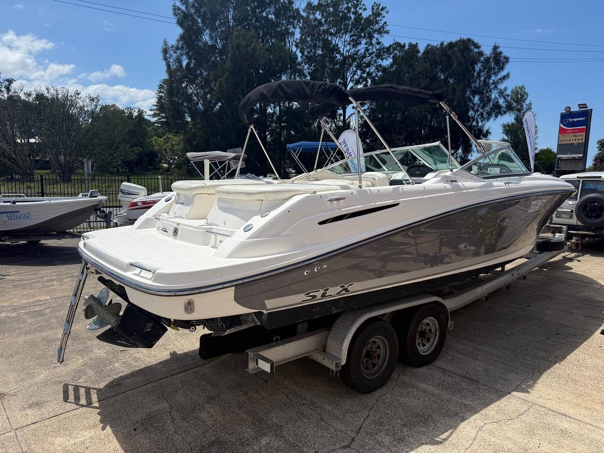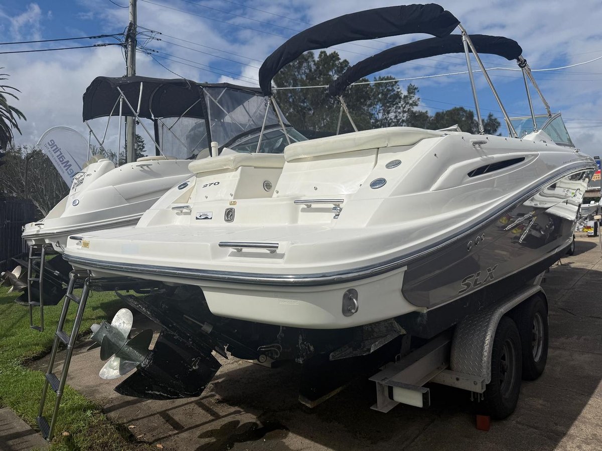 The Sea Ray 270 SLX is an awesome day boat. Plenty of space and comfort to take all your family and friends. The 496 Big Block provides plenty of get up and go. You and your passengers will enjoy comfortable boating with amenities like a proper vacu-flush toilet, fresh water showers and sinks, cockpit tables and more.